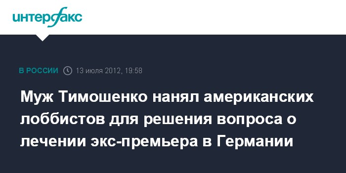Муж Тимошенко нанял американских лоббистов для решения вопроса о лечении экс-премьера в Германии