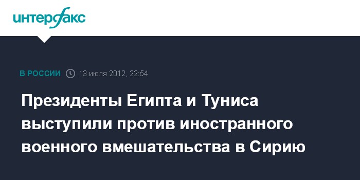 Президенты Египта и Туниса выступили против иностранного военного вмешательства в Сирию