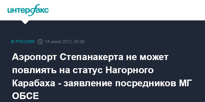 Аэропорт Степанакерта не может повлиять на статус Нагорного Карабаха - заявление посредников МГ ОБСЕ