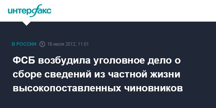 ФСБ возбудила уголовное дело о сборе сведений из частной жизни высокопоставленных чиновников