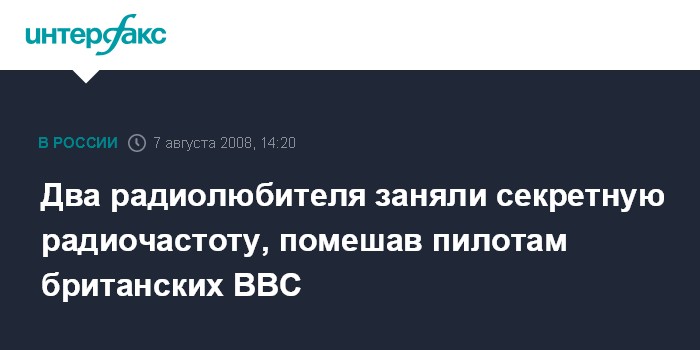 Москва. 7 августа. INTERFAX.RU - В городе Димитровград Ульяновской области нашли двух радиолюбителей, который по ошибке заняли секретную радиочастоту, используемую пилотами ВВС Великобритании.
