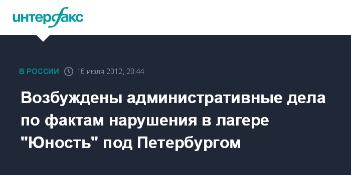 Возбуждены административные дела по фактам нарушения в лагере "Юность" под Петербургом