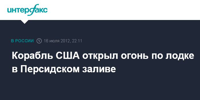 Вашингтон.16 июля. INTERFAX.RU - Один человек убит, еще трое ранены в результате стрельбы с военно-морского корабля США, открывшего огонь по лодке в водах Персидского залива недалеко от побережья ОАЭ, сообщили в понедельник представители Пентагона.
