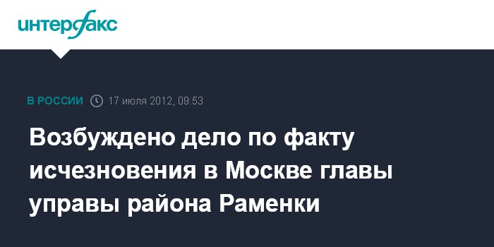 Возбуждено дело по факту исчезновения в Москве главы управы района Раменки