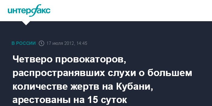 Четверо провокаторов, распространявших слухи о большем количестве жертв на Кубани, арестованы на 15 суток