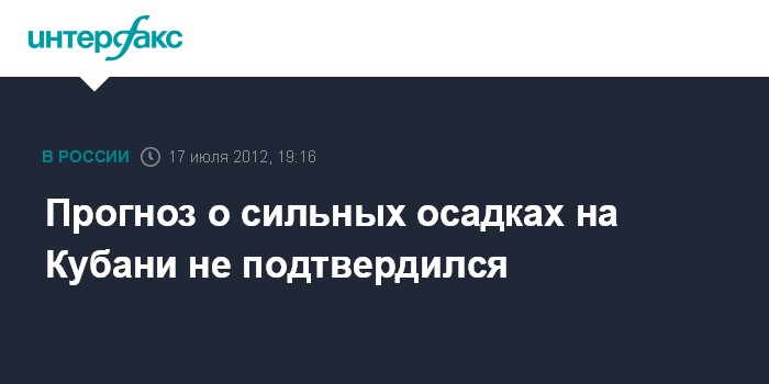 Краснодар. 17 июля. INTERFAX.RU - Несмотря на прогноз, сильных дождей на территории Краснодарского края во вторник не было, сообщает пресс-служба ГУ МЧС РФ по региону.
