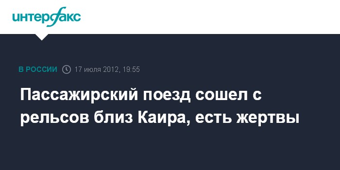 Каир. 17 июля. INTERFAX.RU - Большое число людей погибло в результате крушения пассажирского поезда в окрестностях столицы Египта Каира, сообщили журналистам источники в службе безопасности страны.