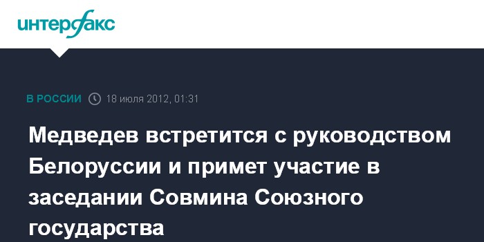 Медведев встретится с руководством Белоруссии и примет участие в заседании Совмина Союзного государства