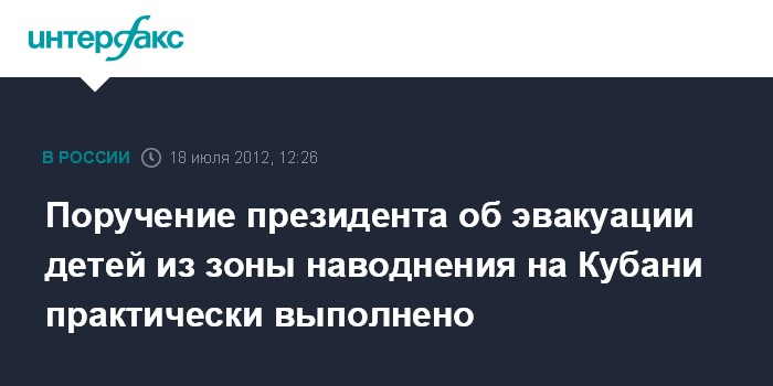 Он отметил, что в основном, поручение президента об эвакуации в безопасные места детей из зоны наводнения на Кубани уже выполнено. Он добавил, что не все родители были готовы отпустить своих детей.