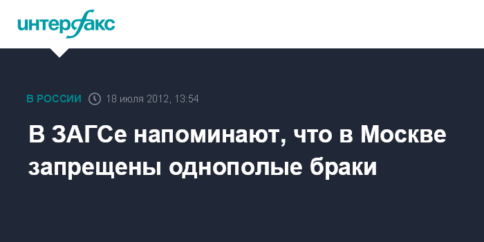 В ЗАГСе напоминают, что в Москве запрещены однополые браки