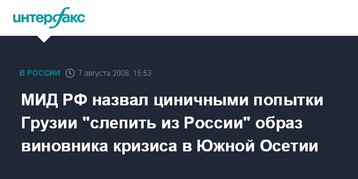 МИД РФ назвал циничными попытки Грузии "слепить из России" образ виновника кризиса в Южной Осетии