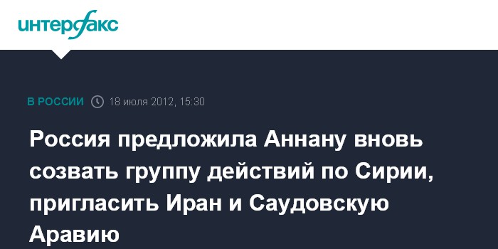 Россия предложила Аннану вновь созвать группу действий по Сирии, пригласить Иран и Саудовскую Аравию