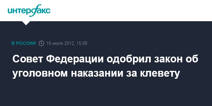 Совет Федерации одобрил закон об уголовном наказании за клевету