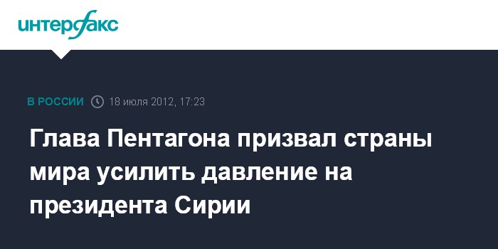 Вашингтон. 18 июля. INTERFAX.RU - Власти США обеспокоены эскалацией насилия в Сирии и призывают мировое сообщество усилить давление на правящий режим президента Башара Асада, заявил в среду министр обороны США Леон Панетта.