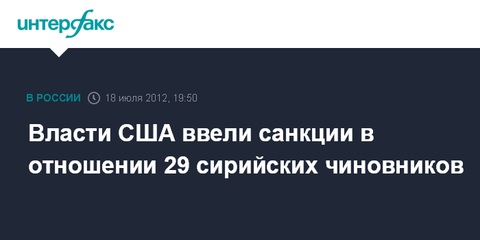Вашингтон. 18 июля. INTERFAX.RU - Министерство финансов США объявило о введении санкций против 29 высокопоставленных представителей правящего режима Сирии, сообщают в среду местные СМИ.