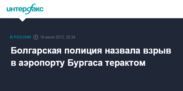 София. 18 июля. INTERFAX.RU - Министерство внутренних дел Болгарии квалифицировало взрыв в аэропорту города Бургаса как теракт.