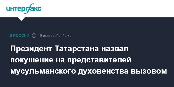 Президент Татарстана назвал покушение на представителей мусульманского духовенства вызовом