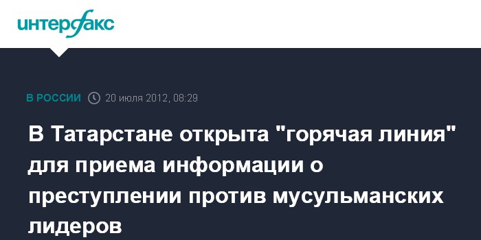 Казань. 20 июля. INTERFAX.RU - В целях скорейшего расследования нападения на мусульманских лидеров Татарстана начала работу круглосуточная многоканальная "горячая линия" для приема информации от населения.