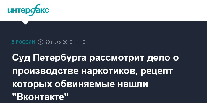 Суд Петербурга рассмотрит дело о производстве наркотиков, рецепт которых обвиняемые нашли "Вконтакте"