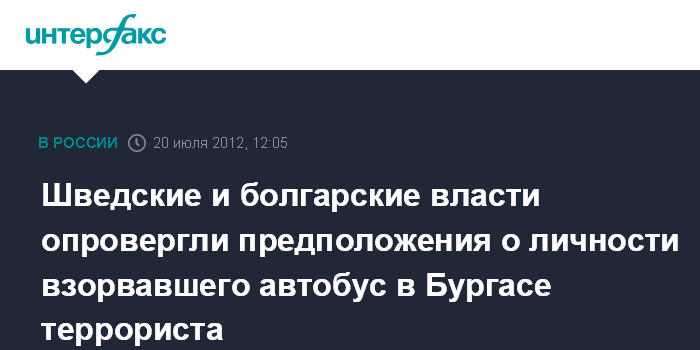 Шведские и болгарские власти опровергли предположения о личности взорвавшего автобус в Бургасе террориста