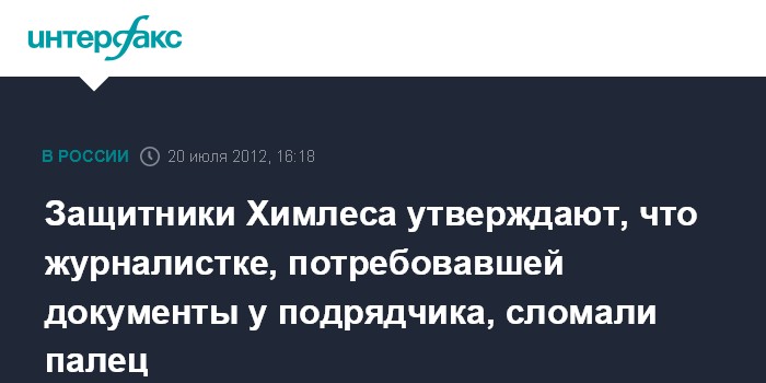 Защитники Химлеса утверждают, что журналистке, потребовавшей документы у подрядчика, сломали палец