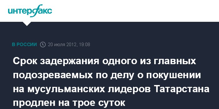 Срок задержания одного из главных подозреваемых по делу о покушении на мусульманских лидеров Татарстана продлен на трое суток