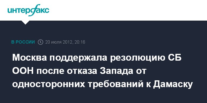 Москва. 20 июля. INTERFAX.RU - Россия проголосовала за резолюцию СБ ООН по продлению миссии наблюдателей в Сирии после того, как западные партнеры отказались от своих односторонних требований к сирийскому правительству.