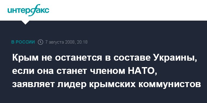 "Прогноз: Крым не согласится остаться в составе Украины, если она будет втянута в НАТО", - заявил, выступая на радио "Голос России", лидер Компартии Крыма. Текст выступления размещен в четверг на сайте Л.Грача.