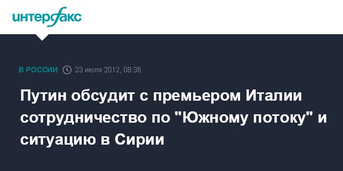 Что касается международной тематики, то, как планируется, Путин и Монти затронут "положение на Ближнем Востоке и Северной Африке (прежде всего в Сирии)", сообщили в Кремле.