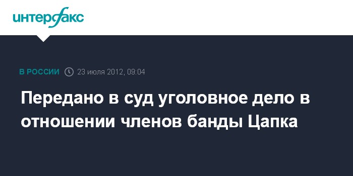 Передано в суд уголовное дело в отношении членов банды Цапка