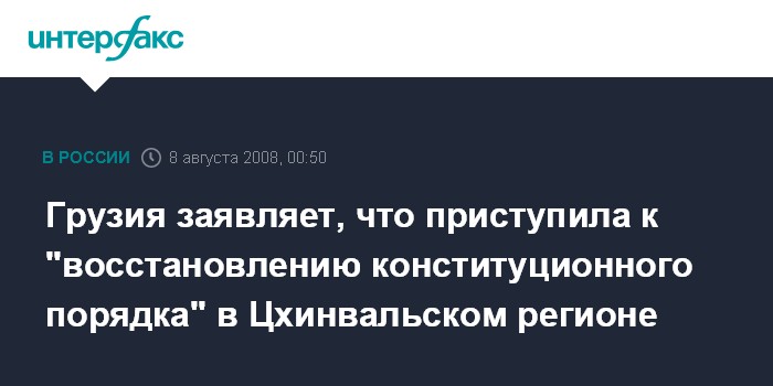 Тбилиси. 8 августа. ИНТЕРФАКС - Грузинская сторона приступила "к операции по наведению в Цхинвальском регионе конституционного порядка", - заявил в эфире телекомпании "Рустави 2" командующий миротворческими операциями вооруженных сил Грузии Мамука Курашвили.