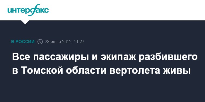 Все пассажиры и экипаж разбившего в Томской области вертолета живы