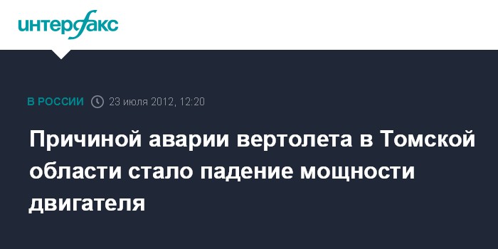 Причиной аварии вертолета в Томской области стало падение мощности двигателя