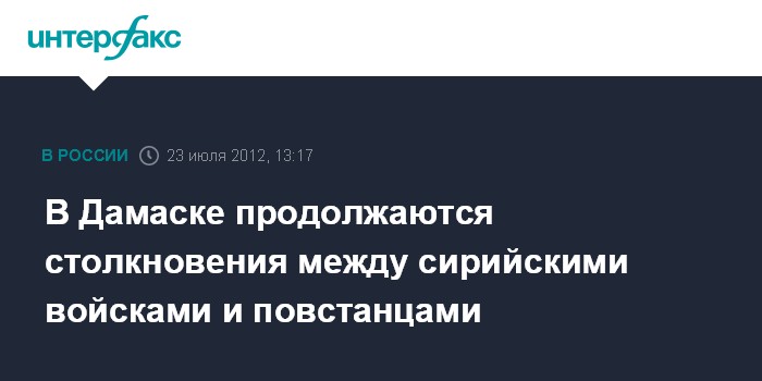 Бейрут. 23 июля. INTERFAX.RU - Столкновения между правительственными войсками и вооруженной оппозицией продолжаются в различных районах Дамаска, сообщают в понедельник активисты оппозиции.