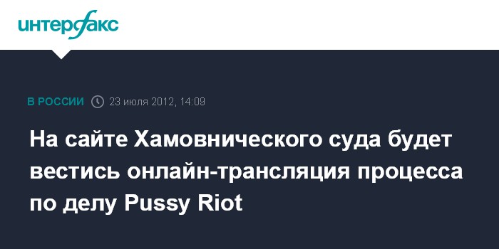 Москва. 23 июля. INTERFAX.RU - Процесс по делу Pussy Riot будет освещаться на официальном сайте Хамовнического суда Москвы посредством видеотрансляции, сообщила пресс-секретарь суда Дарья Лях журналистам в понедельник.