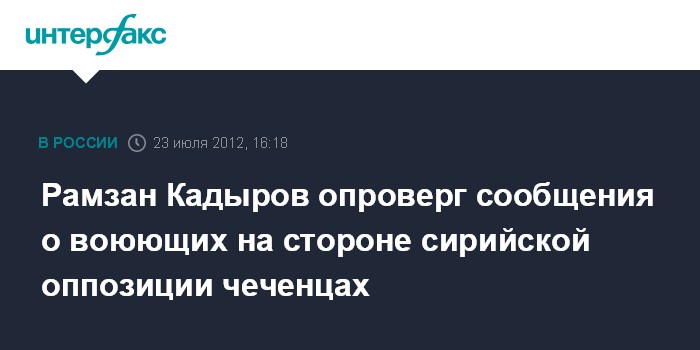 Грозный. 23 июля. ИНТЕРФАКС - Информация о воюющих в Сирии чеченцах из России является ничем неприкрытой ложью и она специально запушена с целью дискредитации позиции России по сирийской проблеме, заявил в понедельник журналистам в Грозном глава Чеченской республики Рамзан Кадыров.