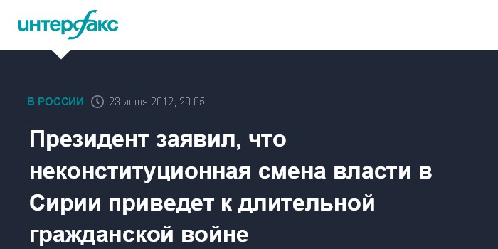 Президент заявил, что неконституционная смена власти в Сирии приведет к длительной гражданской войне
