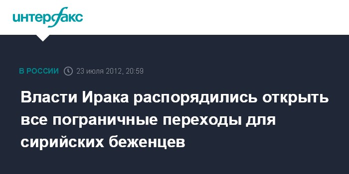 Багдад. 23 июля. INTERFAX.RU - Иракский премьер-министр Нури аль-Малики отдал распоряжение об открытии всех пограничных переходов для приема беженцев из Сирии, заявил журналистам командующий пограничными войсками Ирака Иссам Яссим.