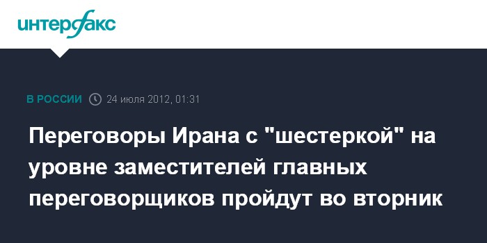 Переговоры Ирана с "шестеркой" на уровне заместителей главных переговорщиков пройдут во вторник