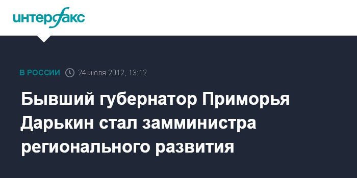 Бывший губернатор Приморья Дарькин стал замминистра регионального развития