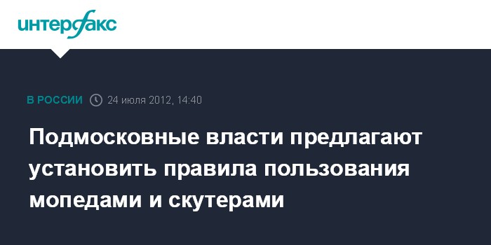Красногорск. 24 июля. INTERFAX.RU - Власти Московской области предлагают ужесточить ответственность за вождение мопедов и скутеров, сообщает главное управление по информационной политике региона во вторник.