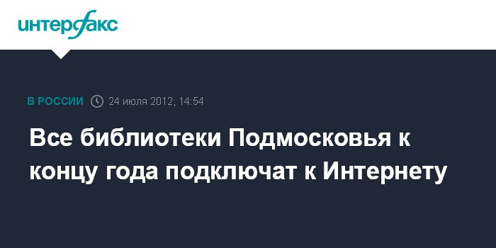 Москва. 24 июля. INTERFAX.RU - Все подмосковные библиотеки до конца года будут обеспечены доступом к сети Интернет, сообщила журналистам во вторник первый замминистра культуры региона Людмила Вашурина.