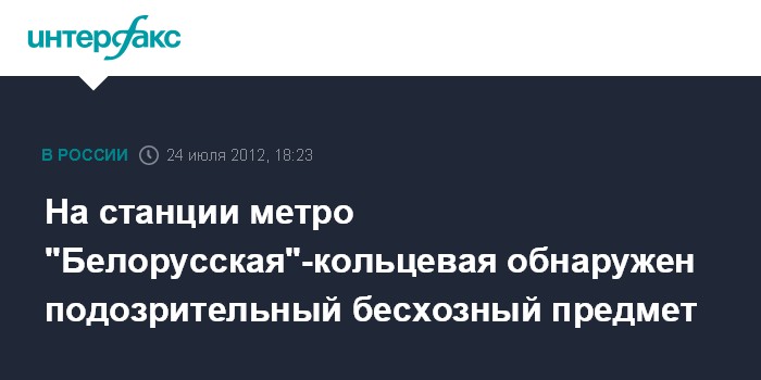 Москва. 24 июля. INTERFAX.RU - На станции "Белорусская" кольцевой линии московского метрополитена оцеплена часть платформы. Как сообщил корреспондент Interfax.ru, в данный момент полиция проверяет подозрительный бесхозный предмет, похожий на коробку, оставленный между колонн.