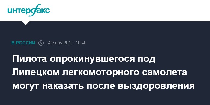 Пилота опрокинувшегося под Липецком легкомоторного самолета могут наказать после выздоровления
