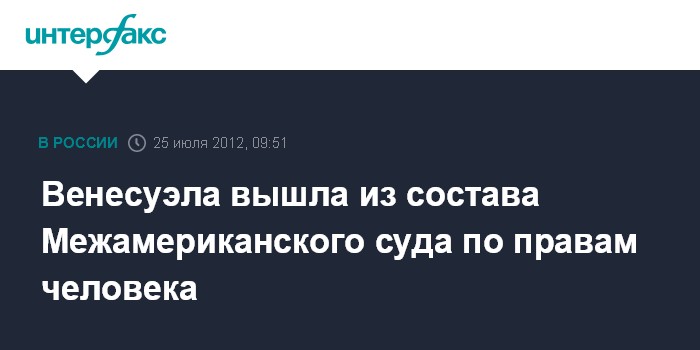 Каракас. 25 июля. INTERFAX.RU - Президент Венесуэлы Уго Чавес объявил о выходе страны из Межамериканского суда по правам человека.