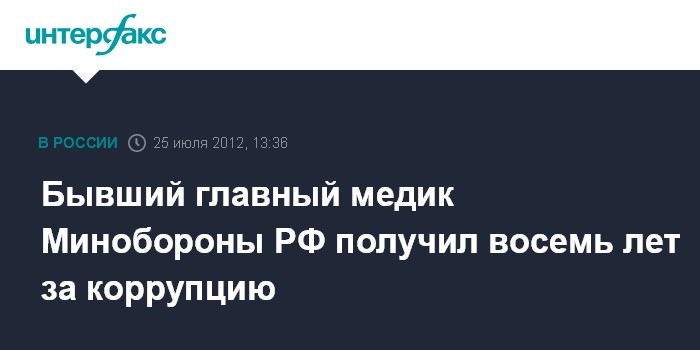 Бывший главный медик Минобороны РФ получил восемь лет за коррупцию