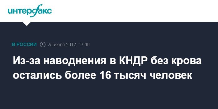 По информации ЦТАК, сезон проливных дождей начался в КНДР 18 июля. Жертвами наводнений стали восемь человек. Более 650 жилых домов и 30 общественных зданий были разрушены по всей стране, около 3,870 тыс. домов были затоплены. Без крова остались более 16 тыс. человек.