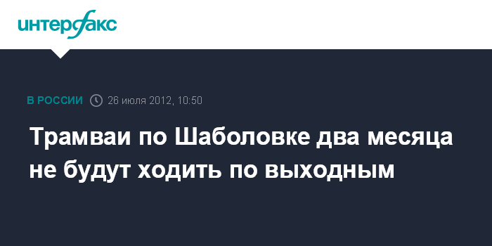 Москва. 26 июля. INTERFAX.RU - В связи с реконструкцией трамвайных путей на два месяца по выходным дням будет закрываться трамвайное движение по улице Шаболовка, сообщили "Интерфаксу" в пресс-службе ГУП "Мосгортранс" в четверг.