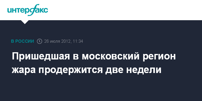 Москва. 25 июля. INTERFAX.RU - Температура в Москве в ближайшие дни повысится до 30 градусов и может продержаться две недели, сообщил глава Росгидромета Александр Фролов.