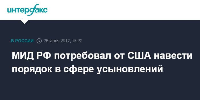 Москва. 26 июля. INTERFAX.RU - Соглашение об усыновлении, заключенное с США и ратифицированное недавно в России, может не вступить в силу, если Штаты не наведут порядок в этой сфере, заявляет российский МИД.
